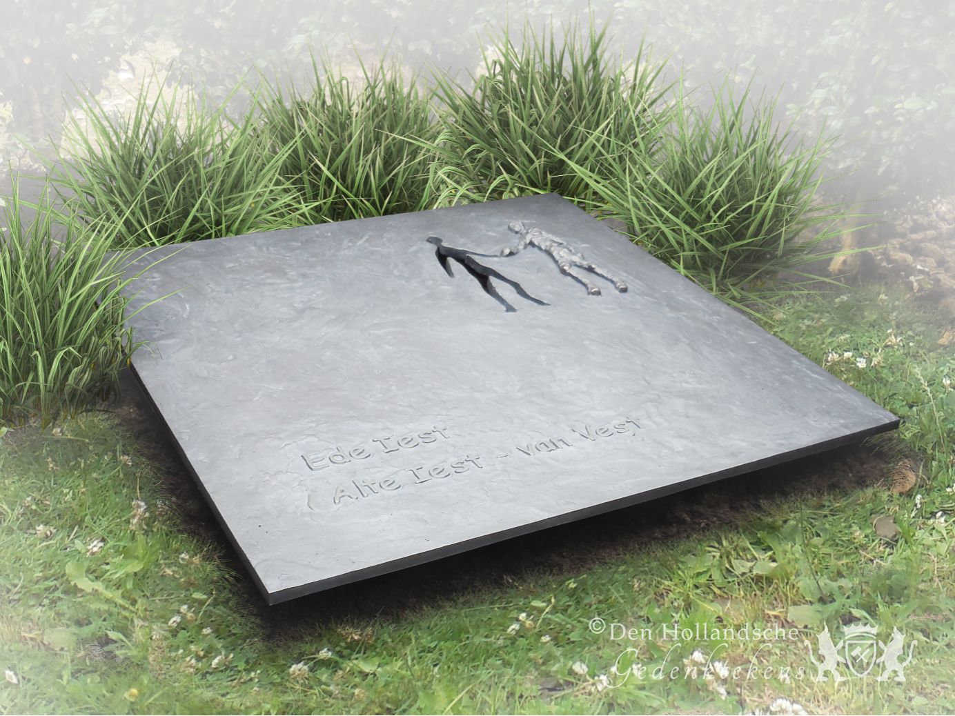 Het brons zorgt ervoor dat deze gedenkplaat een authentiek karakter meekrijgt. De twee mensvormen staan symbool voor het afscheid. Een bronzen gedenkplaat kan ook in een urnenmuur of columbarium worden geplaatst.
