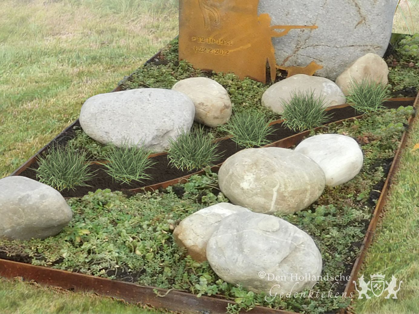 Cortenstaal wordt steeds vaker toegepast in gedenktekens. Vanwege de levendige roestbruine kleur heeft het een warme uitstraling en wordt het ook steeds vaker gekozen. In tegenstelling tot wat de roestkleur wellicht doet vermoeden, is het materiaal zeer weervast.Zwerfkeien