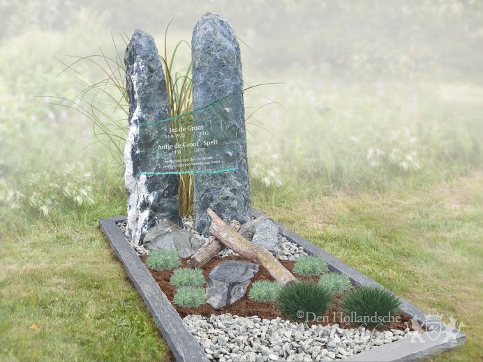 De natuur levert ons de mooiste materialen, vormen en kleuren. Een gevonden stuk steen, een boomstam dat in de loop van miljoenen jaren is versteend of een fraai stuk hout. Daar maken we graag gebruik van. Natuurlijke gedenktekens zijn er in veel verschillende vormen en uitvoeringen. In onze collectie vindt u zowel gedenktekens die enkel en alleen uit puur natuurlijke materialen bestaan als natuurlijke gedenktekens die geïnspireerd zijn op de natuur.Enkele grafsteen - met vloer