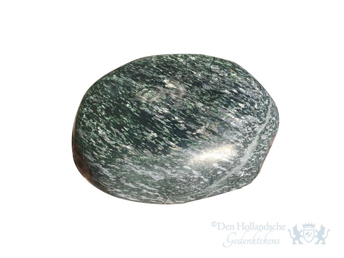 Serpentijn kogelsteen met een gezoete ronde afwerking. Dit materiaal is harder dan Verde Rustika en Val Verde.