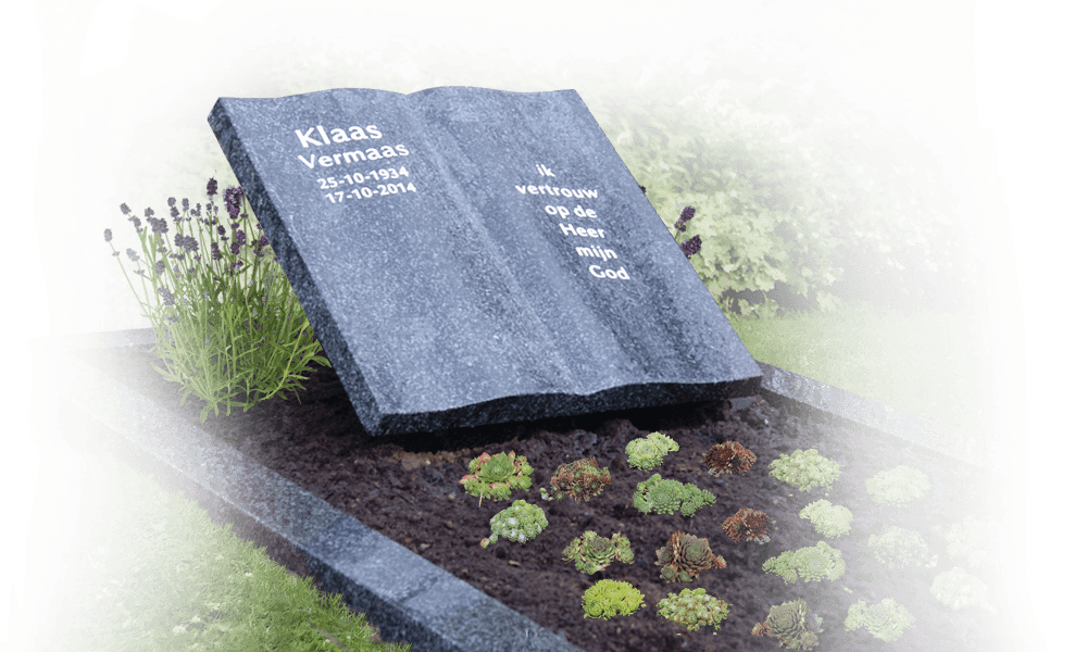 Een opengeslagen boek geeft een gedenkteken een geheel eigen en persoonlijke uitstraling.